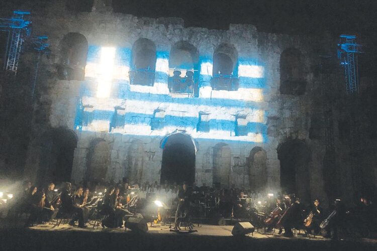 Γιατί ἀπό τά βιβλία στά σχολεῖα μήν περιμένετε νά τό μάθουν. 5.000 ἄνθρωποι ὁλοκλήρωσαν τήν συναυλία ὄρθιοι, συγκινημένοι, ψάλλοντας μαζί μέ τόν Σπανουδάκη τόν Ὕμνο τῆς Ὑπάρξεώς μας. Τόν Ὕμνο πρός τήν Ἐλευθερίαν. Τόν Ἐθνικό Ὕμνο. Μέ τήν ἑλληνική σημαία ἐκ νέου κυματίζουσα στίς «πλάτες» τῆς ὀρχήστρας καί τῶν χορωδιῶν. Ἦταν λοιπόν ὁ καλύτερος ἀποχαιρετισμός τοῦ Ἡρωδείου μέχρι νεωτέρας. Μέ ἕνα ἅλμα ἐθνικῆς μνήμης ἀπό τόν Ἡρώδη τόν Ἀττικό, τήν Ρηγίλλης καί τόν ἀρχαῖο Πολιτισμό μας μέχρι τό Βυζάντιο, τούς ἐπιφανεῖς τοῦ Οἰκουμενικοῦ Ἑλληνισμοῦ.