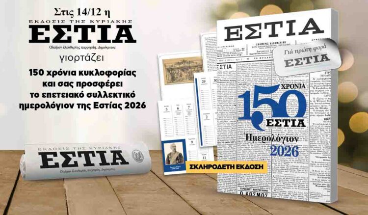 Την Κυριακή 14.12 η Εστία γιορτάζει 150 χρόνια κυκλοφορίας και σας προσφέρει το επετειακό συλλεκτικό ημερολόγιον της Εστίας 2026