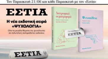Την Παρασκευή 21.06 και κάθε Παρασκευή με την Εστία η νέα εκδοτική σειρά «ΨΥΧΟΛΟΓΙΑ» Όλα τα μεγάλα θέματα της ψυχολογίας σε πολυτελείς σκληρόδετες εκδόσεις Συναισθήματα-Μνήμη-Προσωπικότητα-Σεξουαλικότητα-Ψυχοπάθεια-Κατάθλιψη-Ανθεκτικότητα-Εφηβεία-ΔΕΠΥ-Γήρανση κ.ά. Την Παρασκευή 21.06 μη χάσετε: «ΔΙΑΤΡΟΦΙΚΗ ΣΥΜΠΕΡΙΦΟΡΑ» ή «ΨΥΧΟΠΑΘΕΙΑ», για να επιλέξετε!