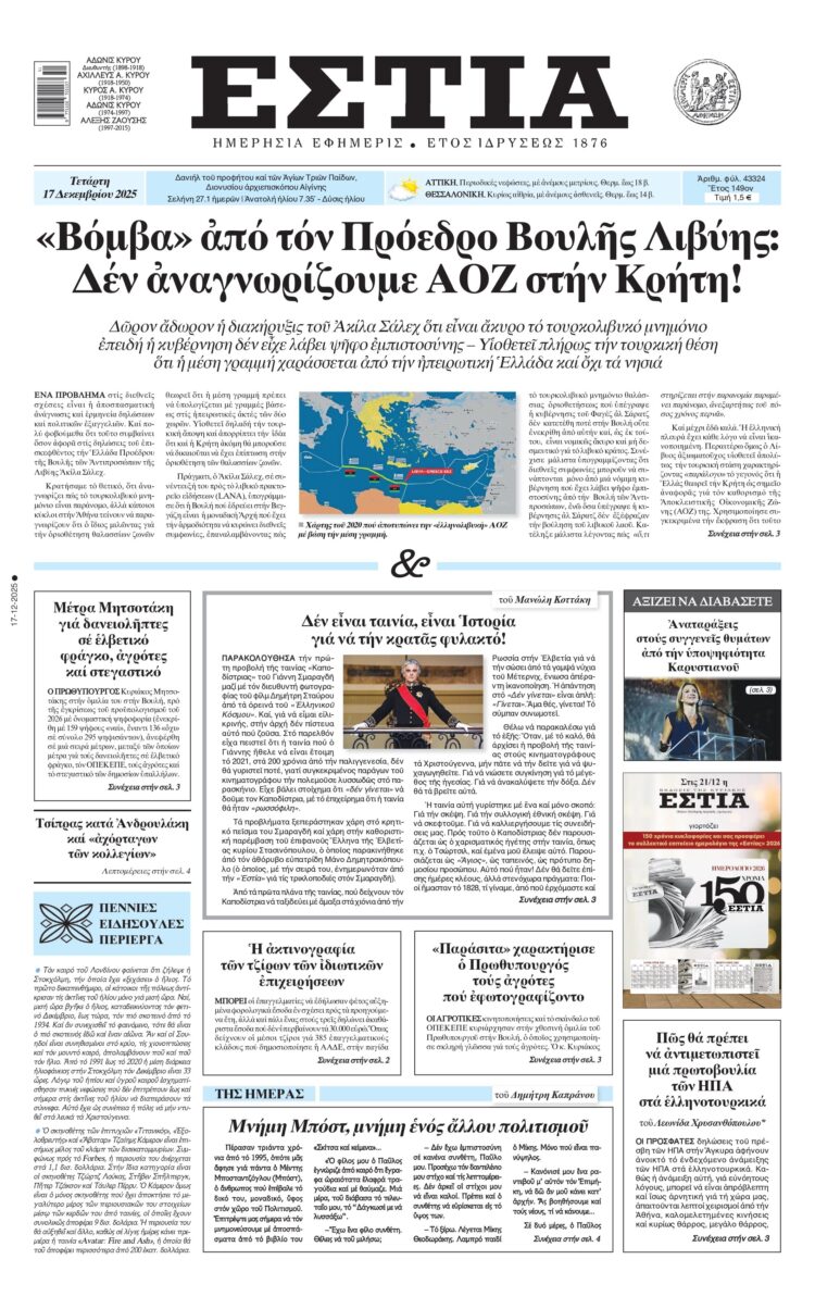 Την Κυριακή 21.12 η Εστία γιορτάζει 150 χρόνια κυκλοφορίας και σας προσφέρει το επετειακό επιτοίχιο ημερολόγιο της Εστίας 2026