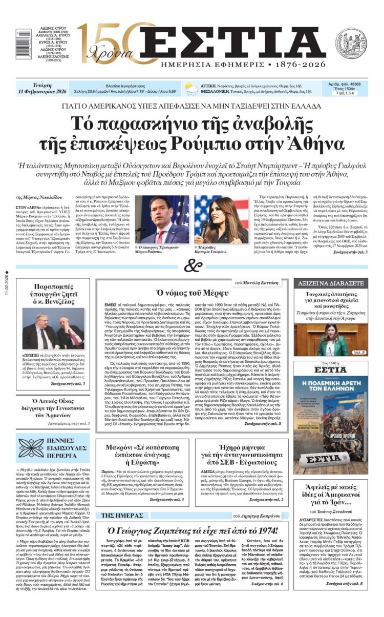 Την Κυριακή 15.02 με την «Εστία» της Κυριακής: Η πολεμική αρετή των Ελλήνων