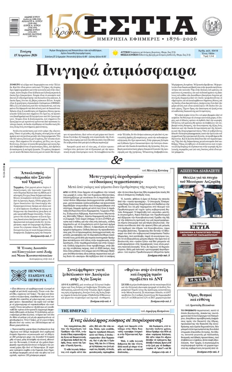 Την Κυριακή 19.04 με την «Εστία» της Κυριακής: «Η Ελληνική οικονομία επί Γεωργίου Παπαδόπουλου»